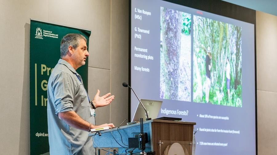 Chief Plant Biosecurity Officer Dr Vincent Lanoiselet opened the workshop by outlining the strategic pivot from eradication to transition to management. This phase focuses on containing the pest to the Perth metropolitan area to protect the state’s $3.56 billion horticulture industry and regional forests. The workshop featured world-leading experts, including Prof. Shannon Lynch from California, Prof. Francois Roets and Prof. Brett Hurley from South Africa, who shared global information and data on host susceptibility and management strategies. Further details on these presentations are provided in the articles below.